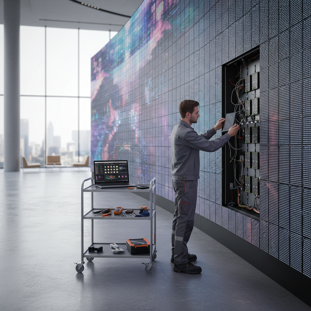 Instalamos pantallas LED y videowalls para oficinas, comercios y espacios públicos, con soluciones robustas y de alta visibilidad pensadas para un uso continuo. Nos ocupamos del montaje, estructura, cableado, configuración y puesta en marcha y, si lo necesitas, te orientamos en la gestión de contenidos para señalización digital.